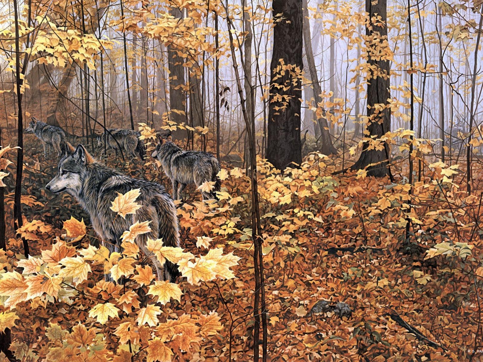 Wallpaper A pack of wolves in the woods