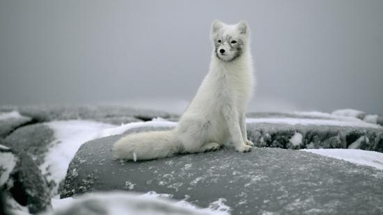 Wallpaper Fox sits on a stone