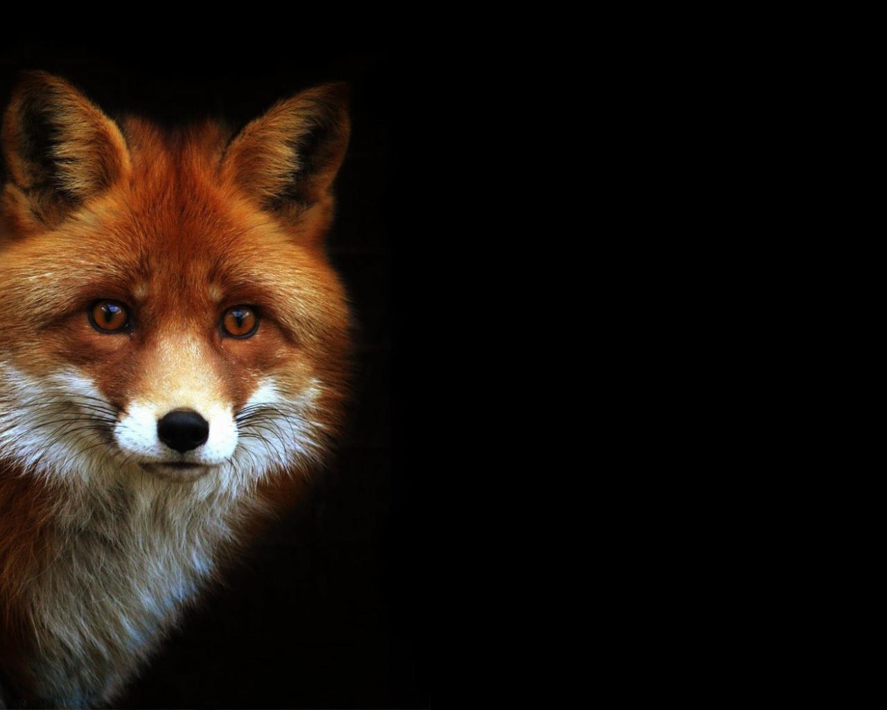 Wallpaper Red Fox on a black background