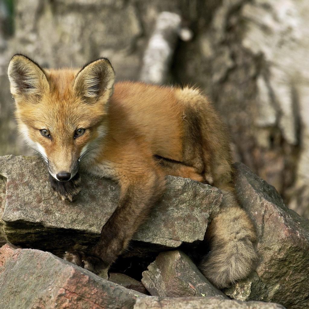 Wallpaper Fox is lying on the stone
