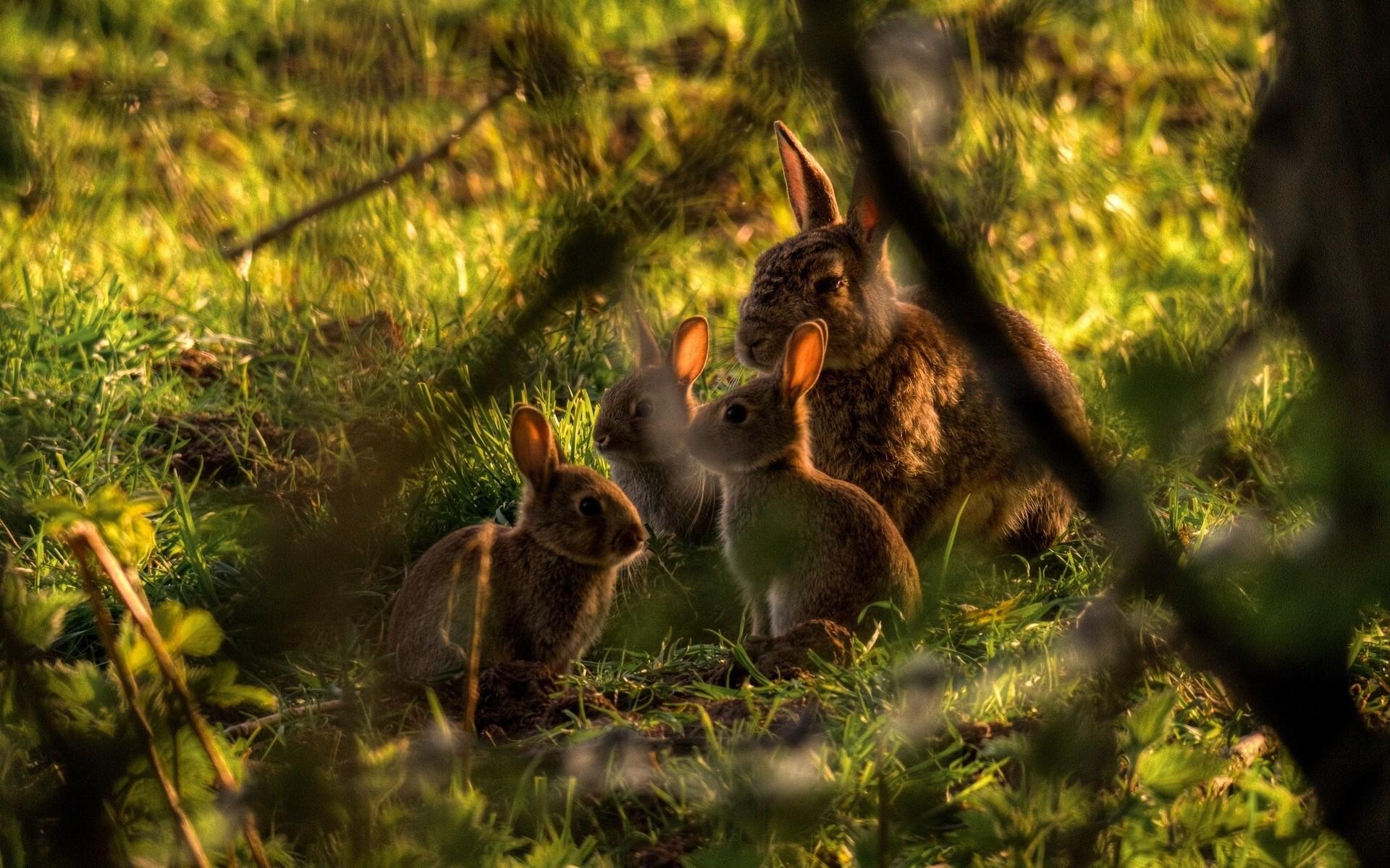 Wallpaper Family of rabbits in the bush