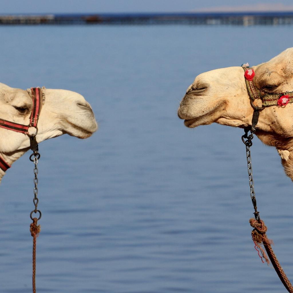Wallpaper Two camel on a background of water