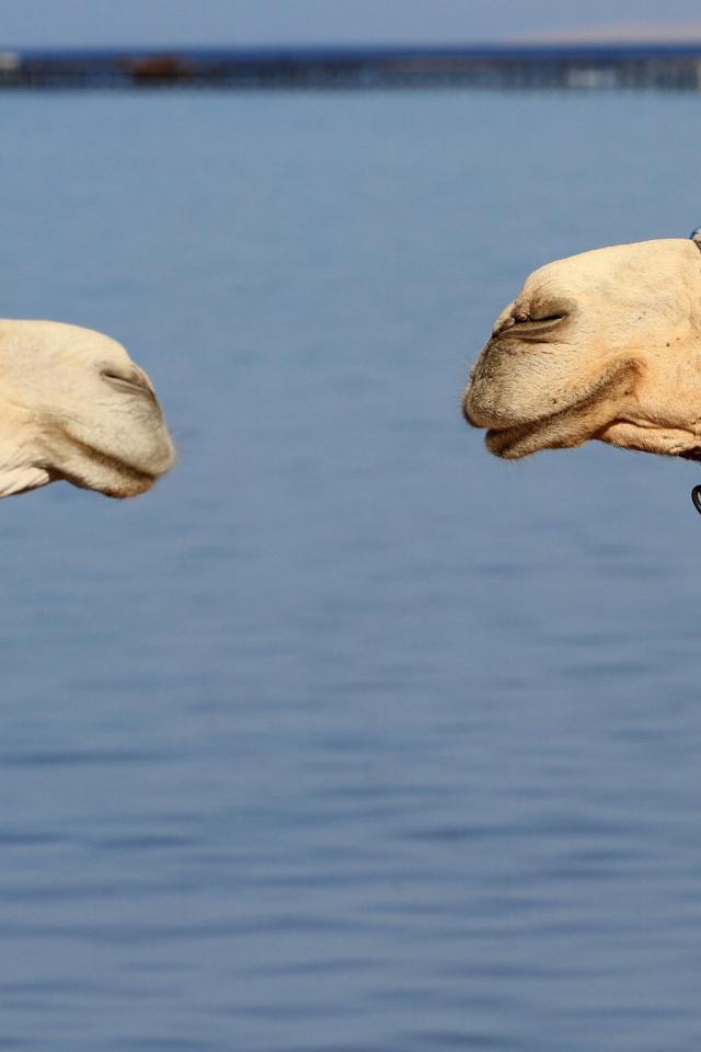 Wallpaper Two camel on a background of water