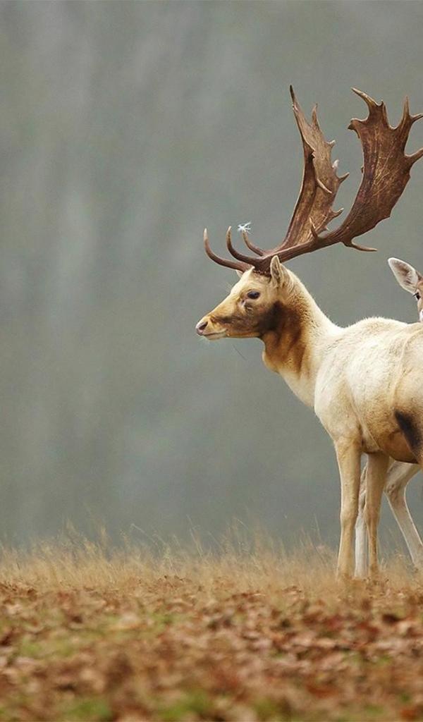Wallpaper Fawn hiding behind Mom