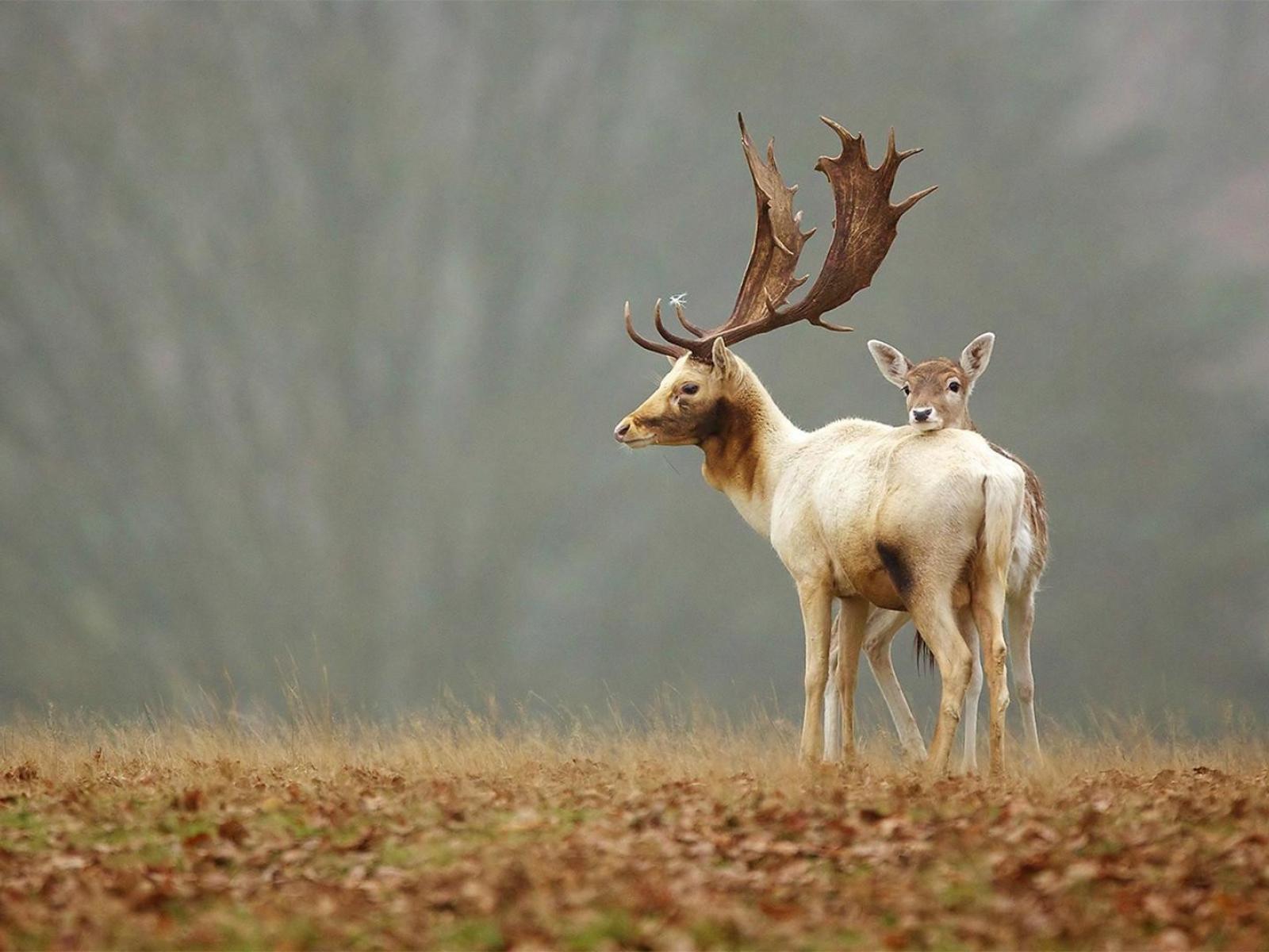 Wallpaper Fawn hiding behind Mom