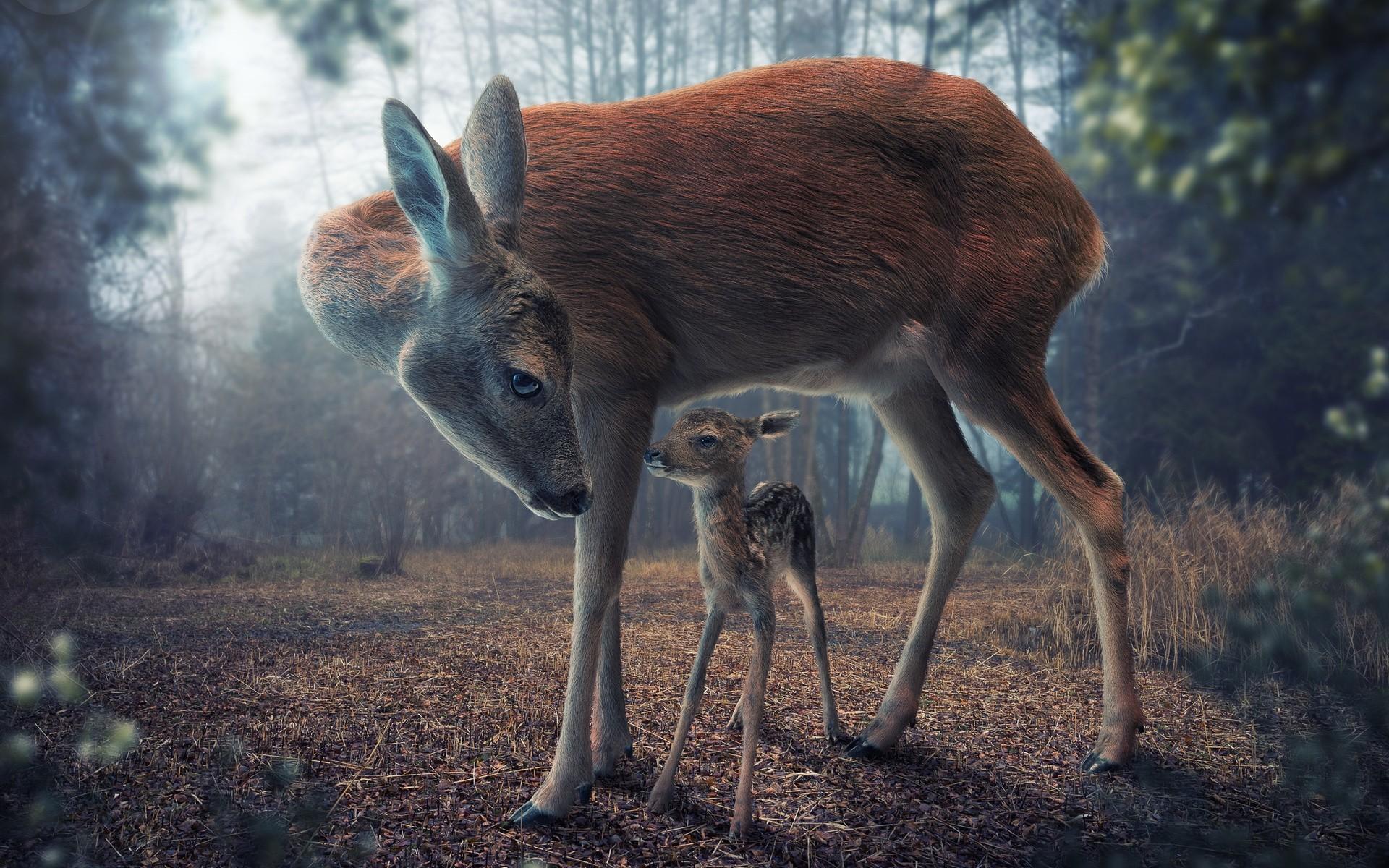 Wallpaper Mom and fawn