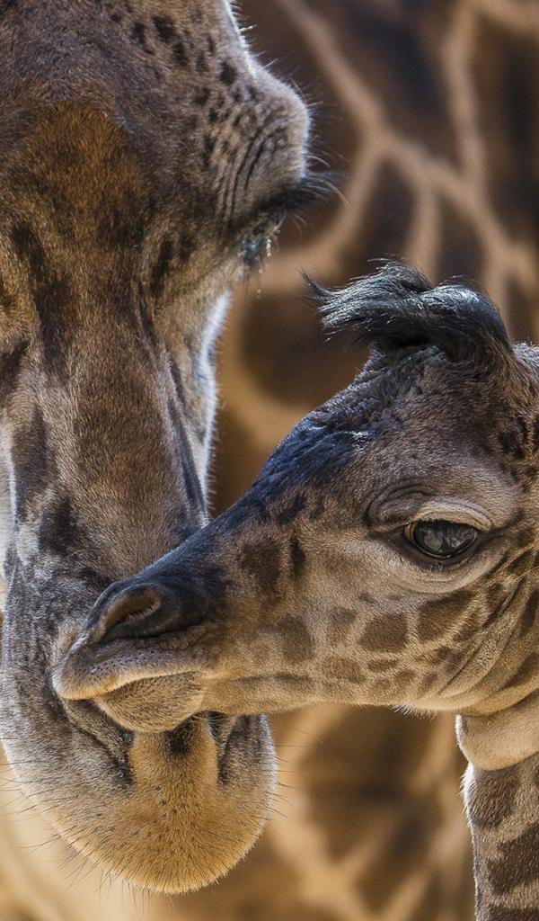 Wallpaper Giraffe with her cub