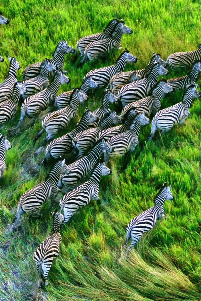 Wallpaper A herd of zebras running across the grass