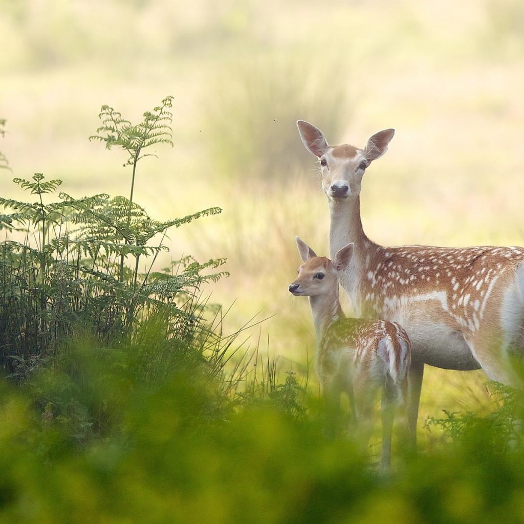Wallpaper Deer with the cub in the woods