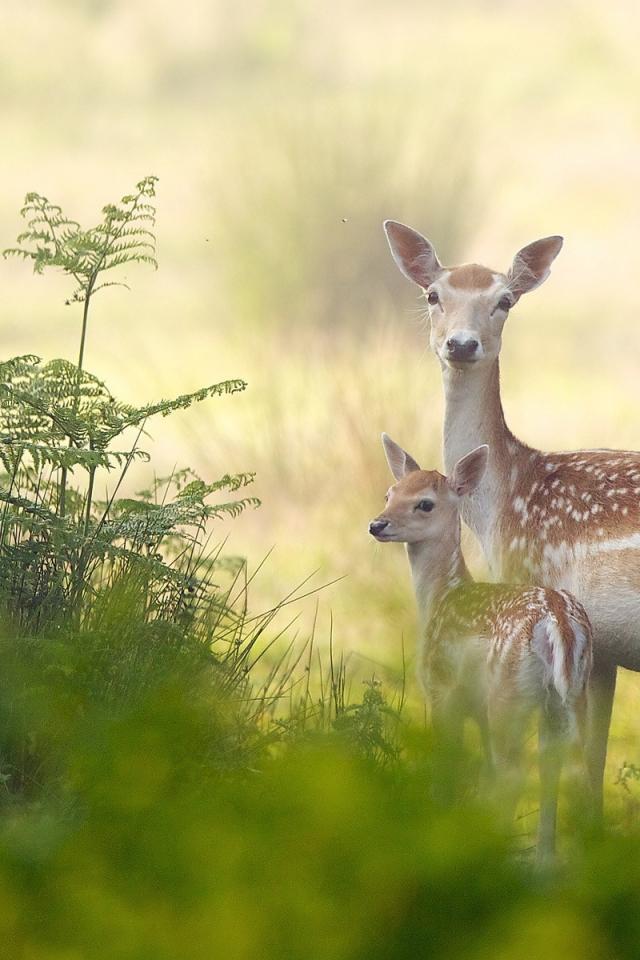 Wallpaper Deer with the cub in the woods