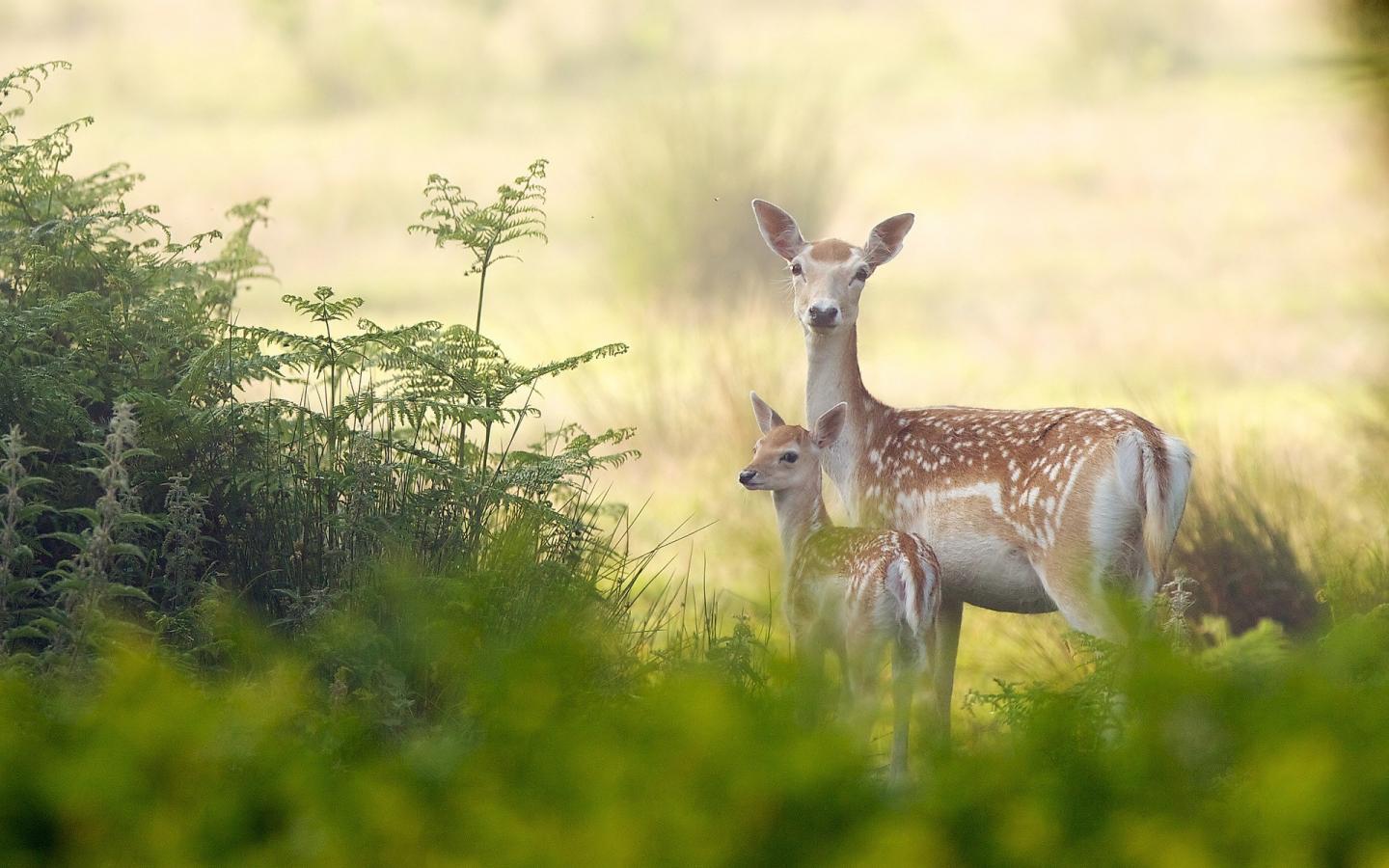 Wallpaper Deer with the cub in the woods