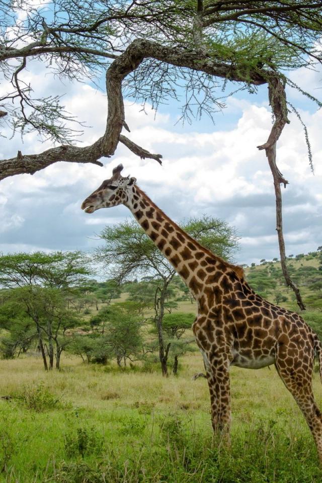 Wallpaper Giraffe standing under a tree