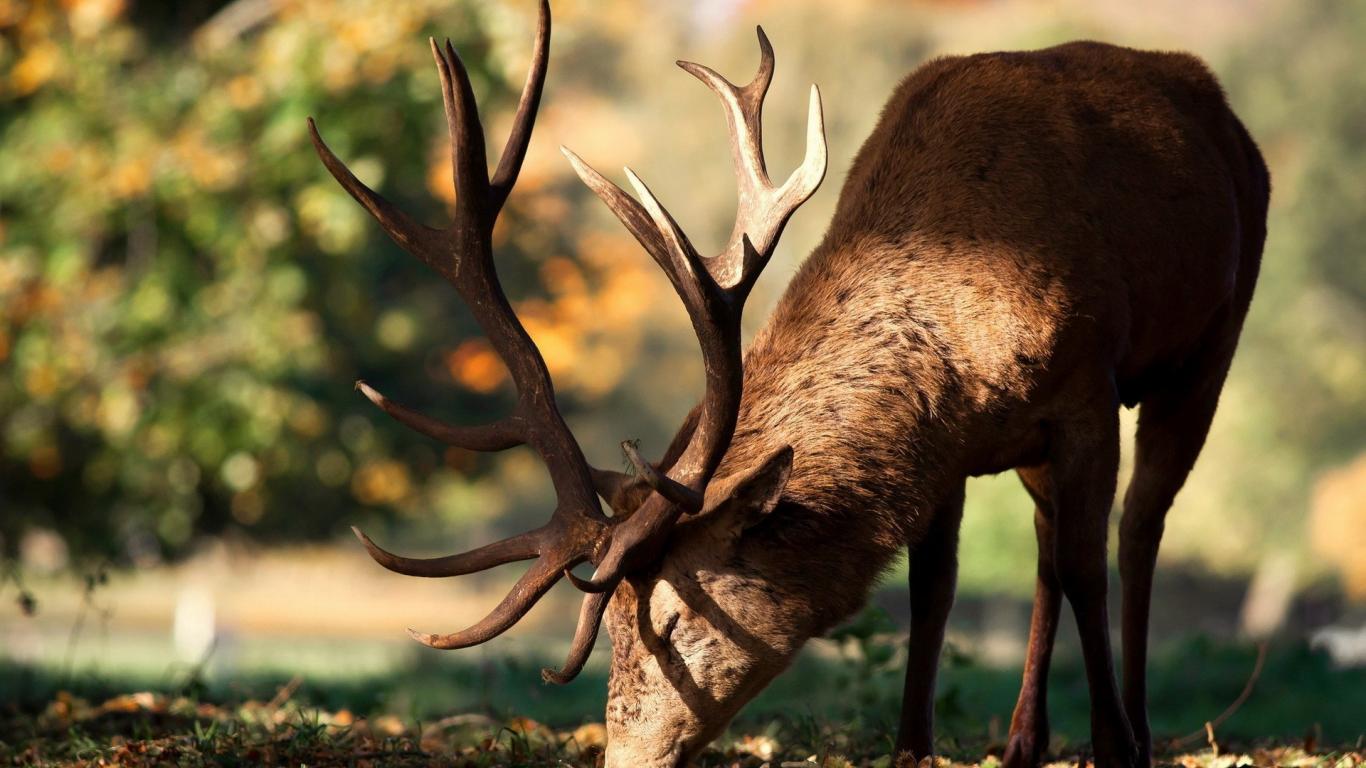 Wallpaper Deer eat grass