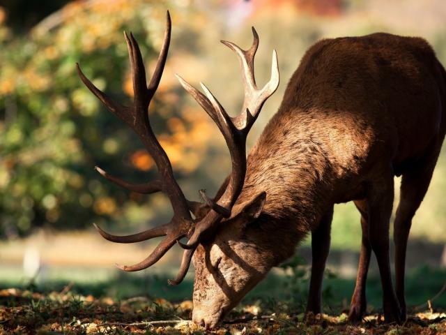 Wallpaper Deer eat grass