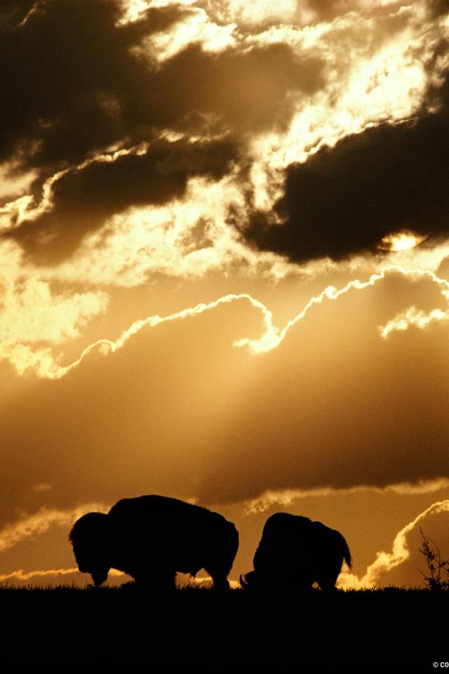 Wallpaper The Buffalo silhouettes at sunset