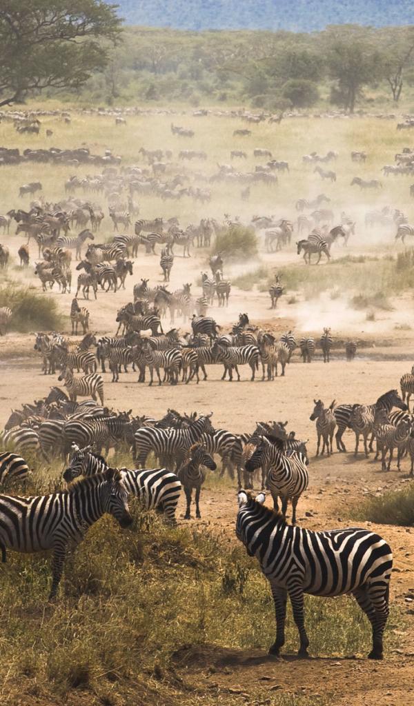 Wallpaper A very large herd of zebras