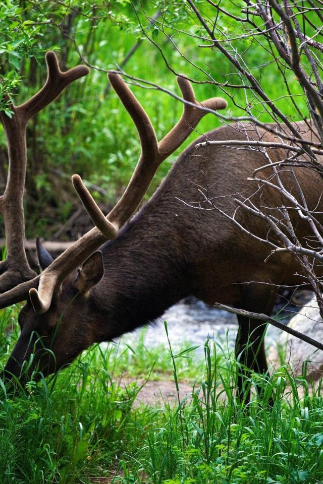 Wallpaper Deer eats grass