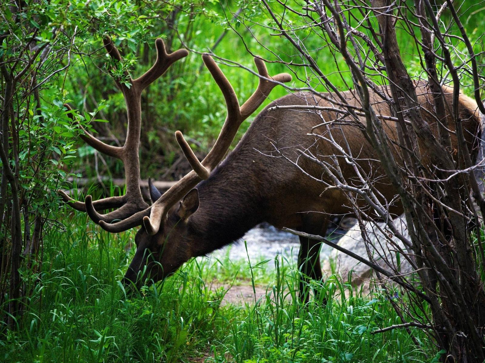 Wallpaper Deer eats grass