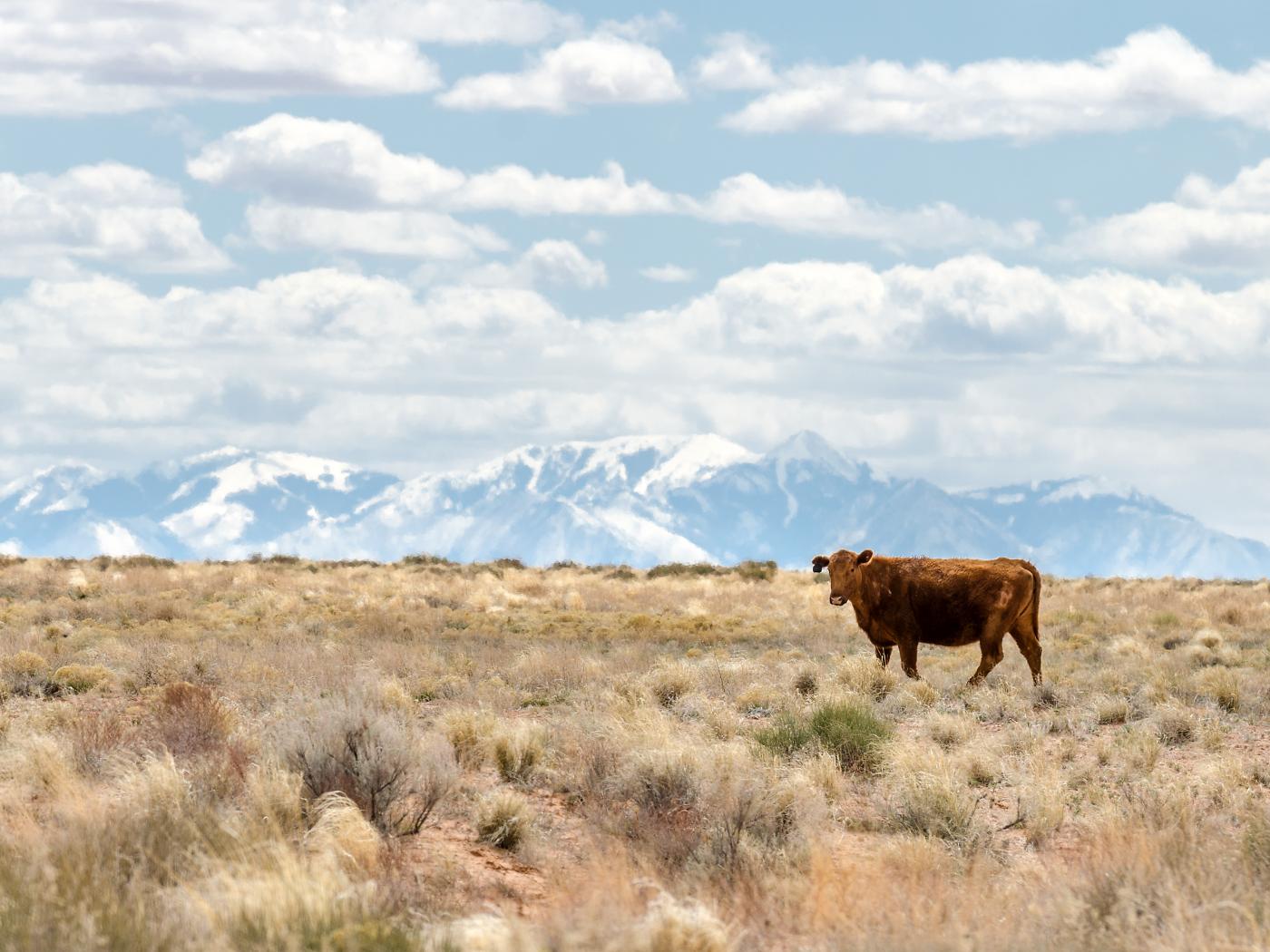 Wallpaper Lonely cow on the background of mountains