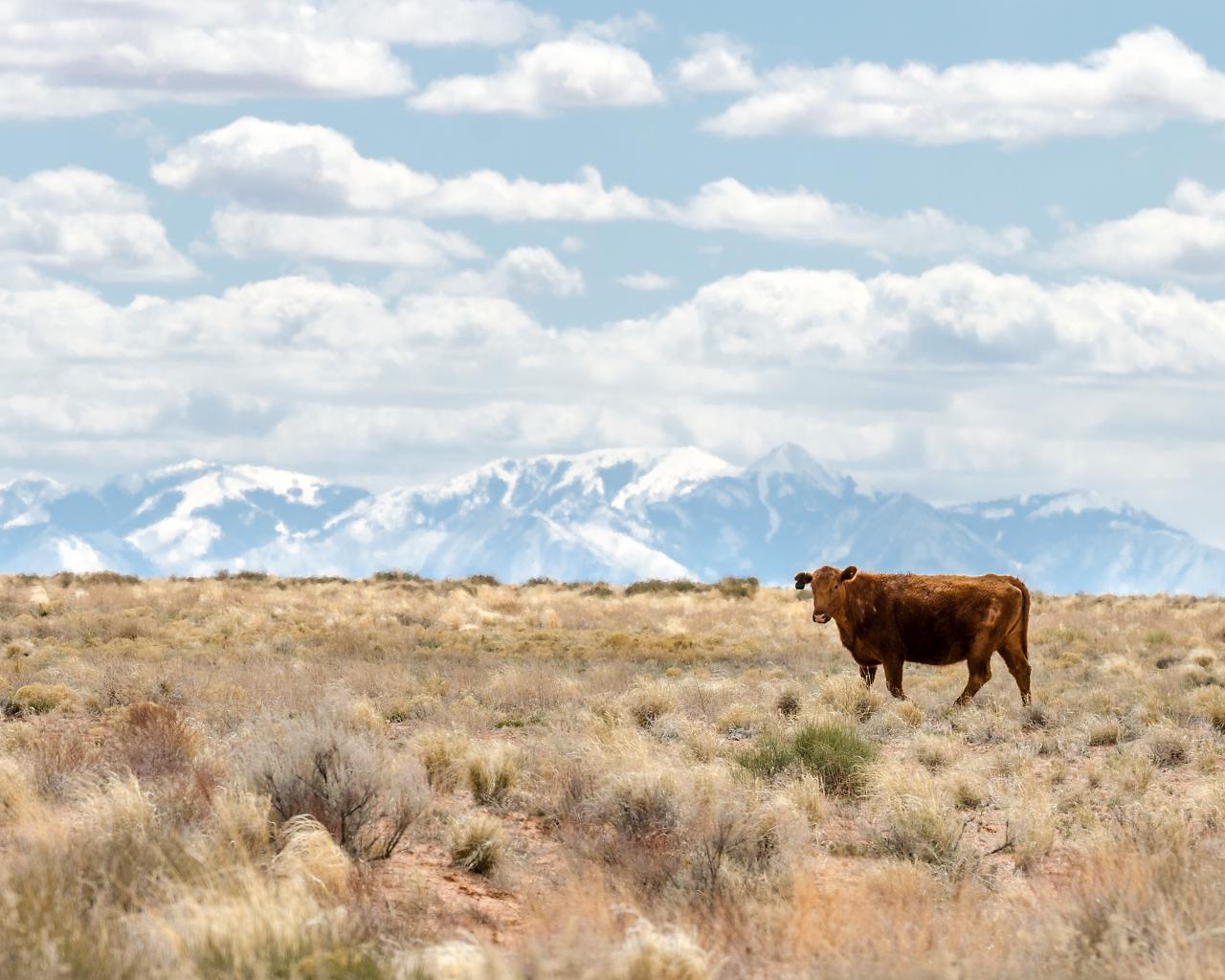 Wallpaper Lonely cow on the background of mountains