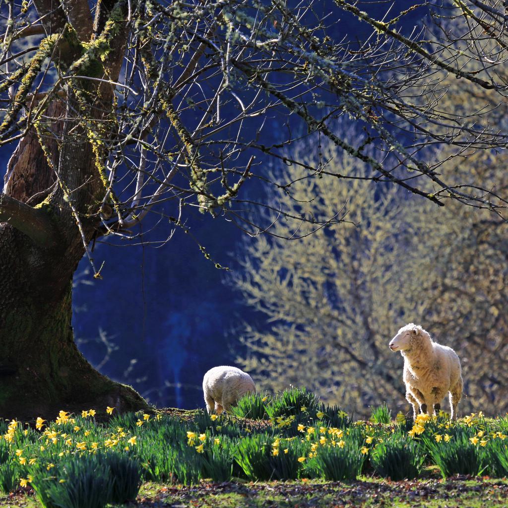 Wallpaper Daffodils and lambs