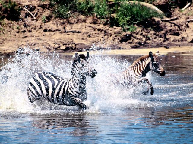 » Wallpaper Zebras are jumping on the river