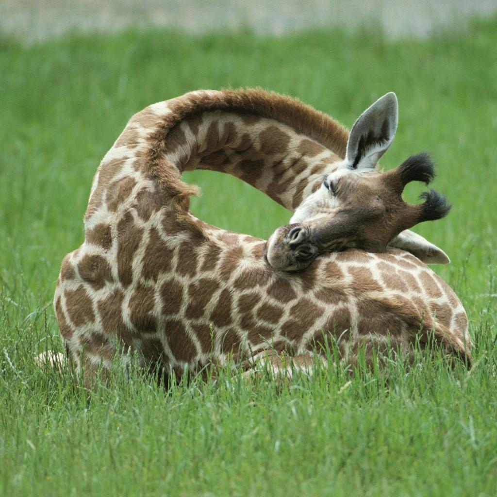 Wallpaper Giraffe asleep on the grass