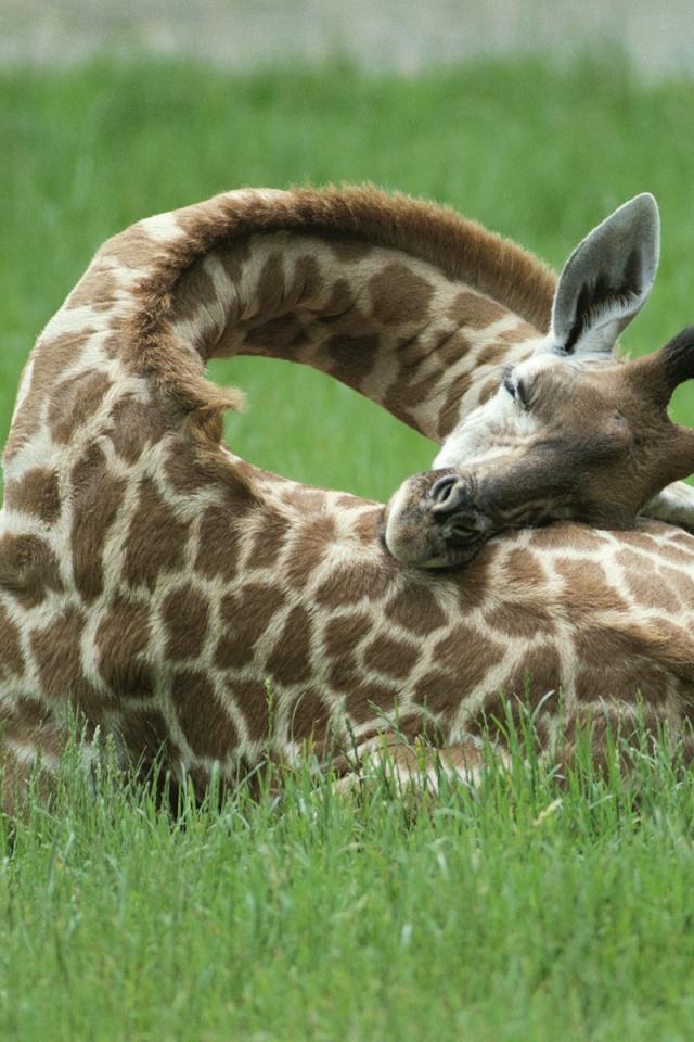 Wallpaper Giraffe asleep on the grass