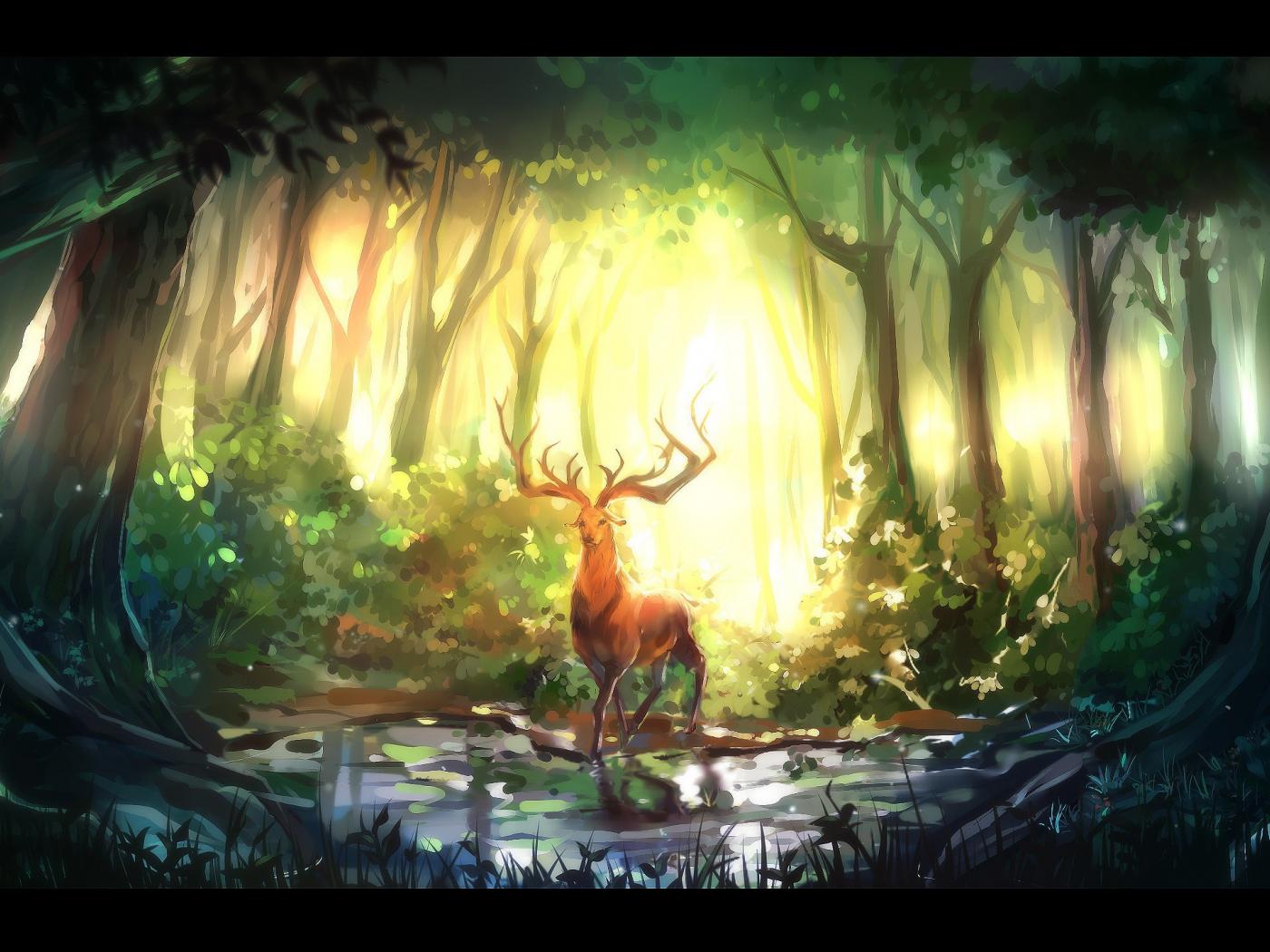 Wallpaper Deer forests sunlight water wallpaper