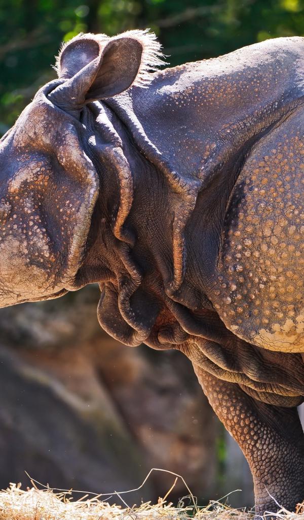 Wallpaper Rhinoceros with a grass