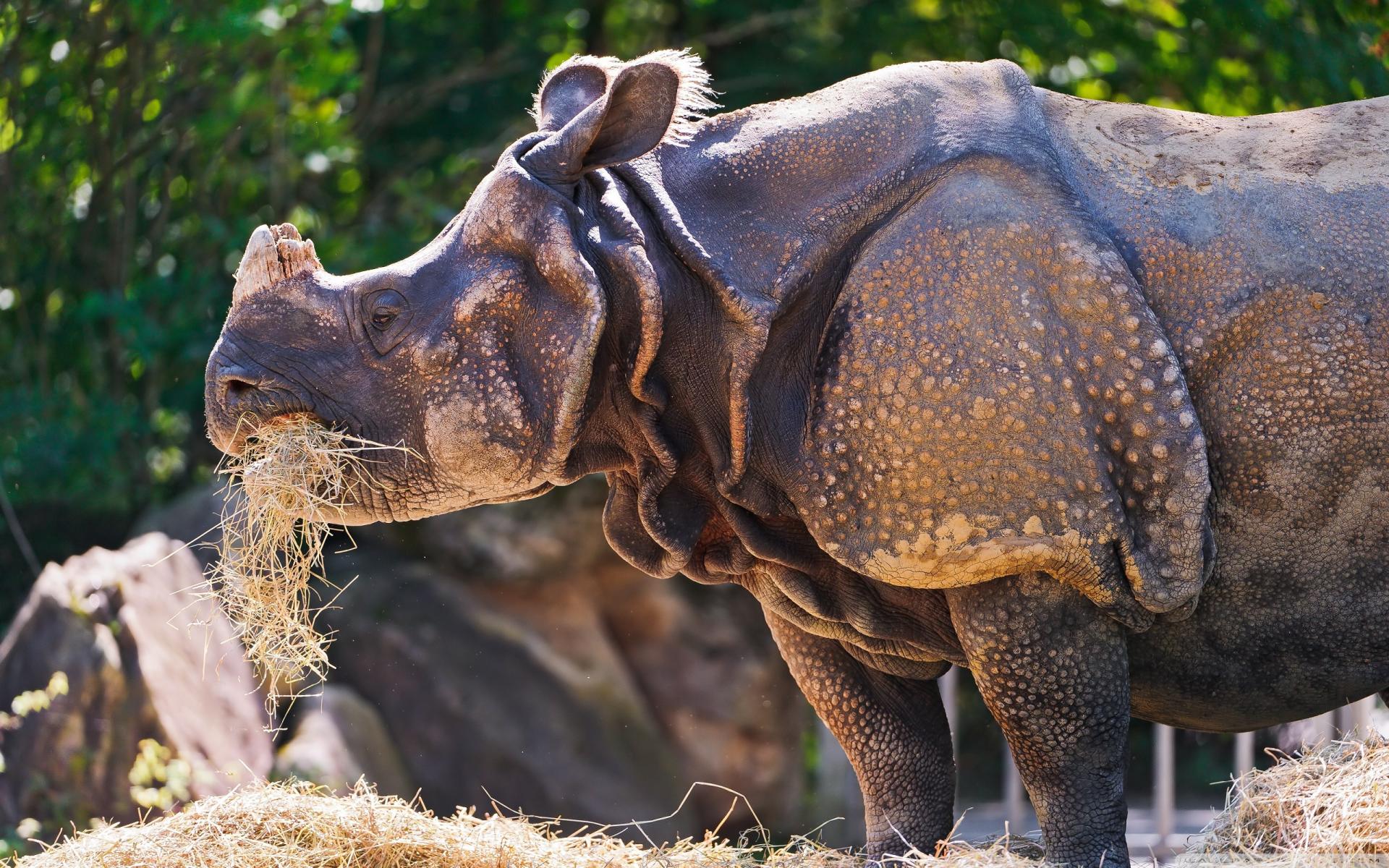 Wallpaper Rhinoceros with a grass