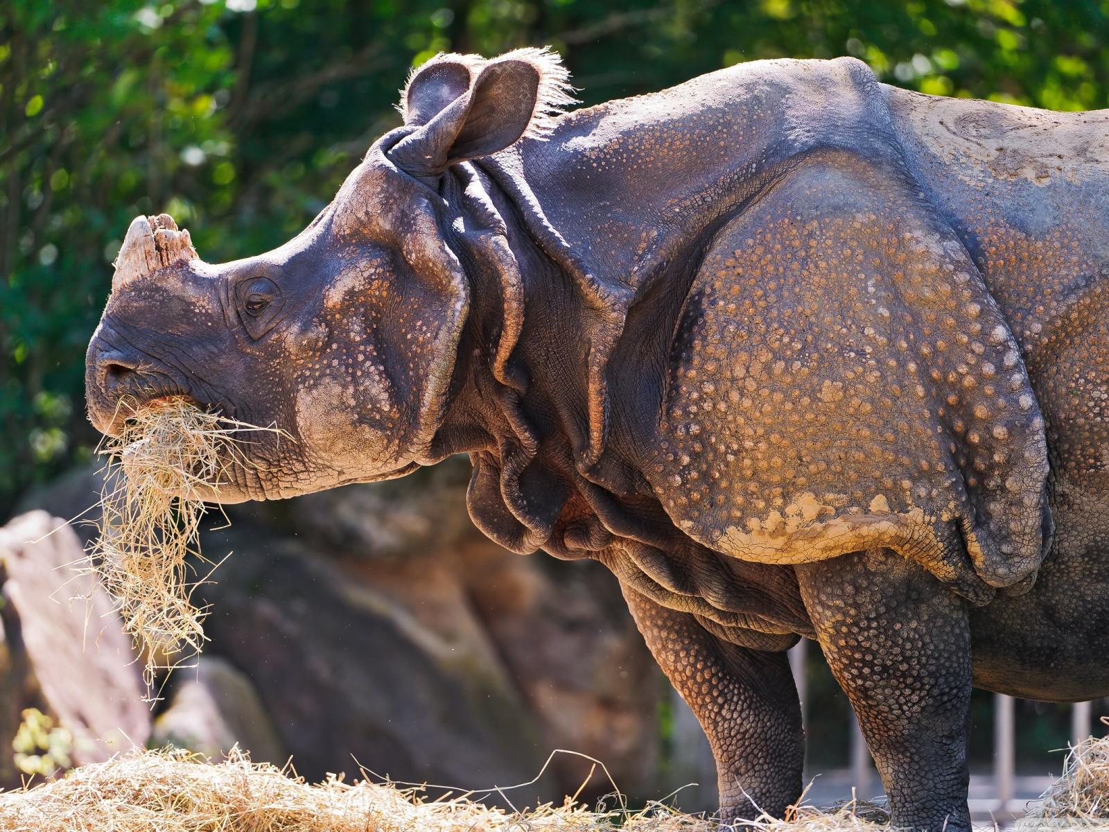 Wallpaper Rhinoceros with a grass