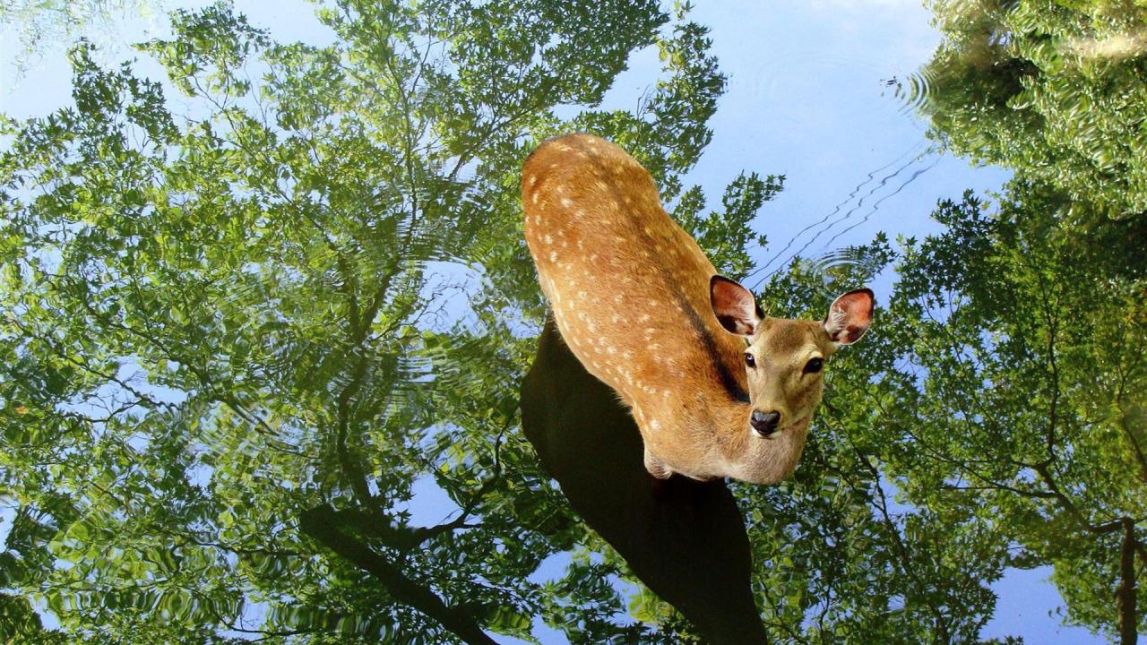 Wallpaper Deer in the water