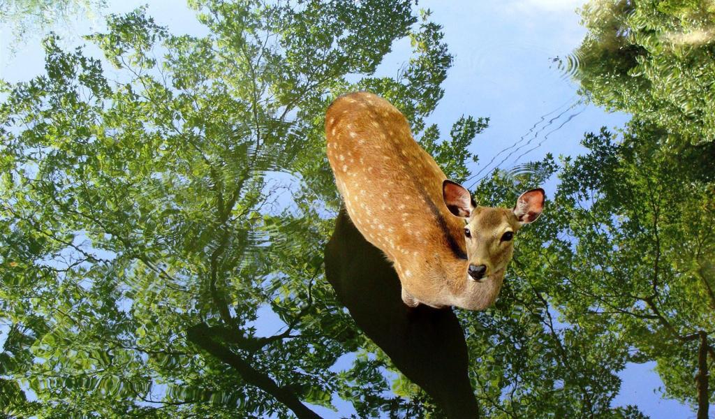 Wallpaper Deer in the water