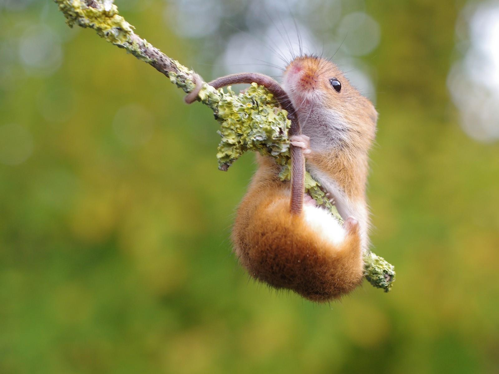Wallpaper Hamster hanging on a branch