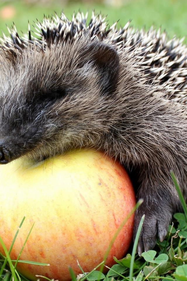 Wallpaper Hedgehog regales ripe apples
