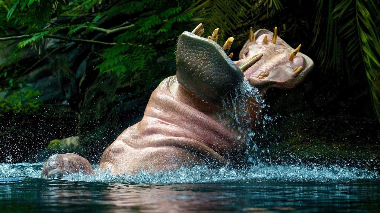 Wallpaper Hippo playing in the water