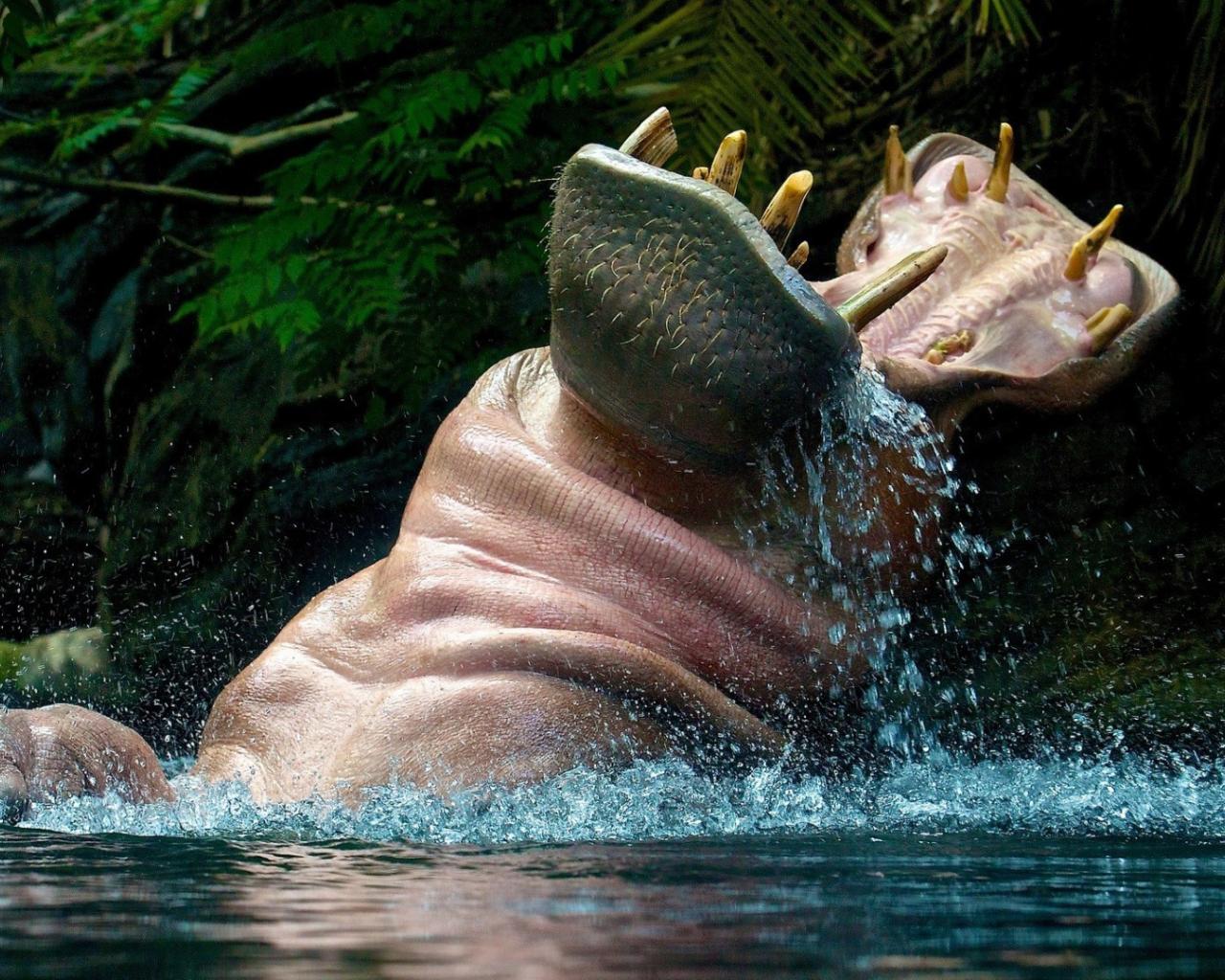 Wallpaper Hippo playing in the water