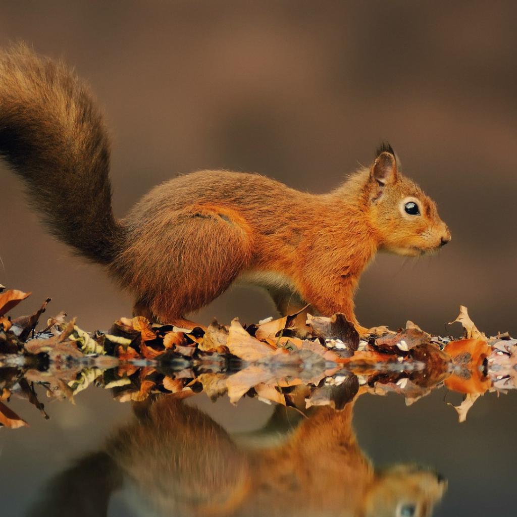 Wallpaper Red squirrel on a pond