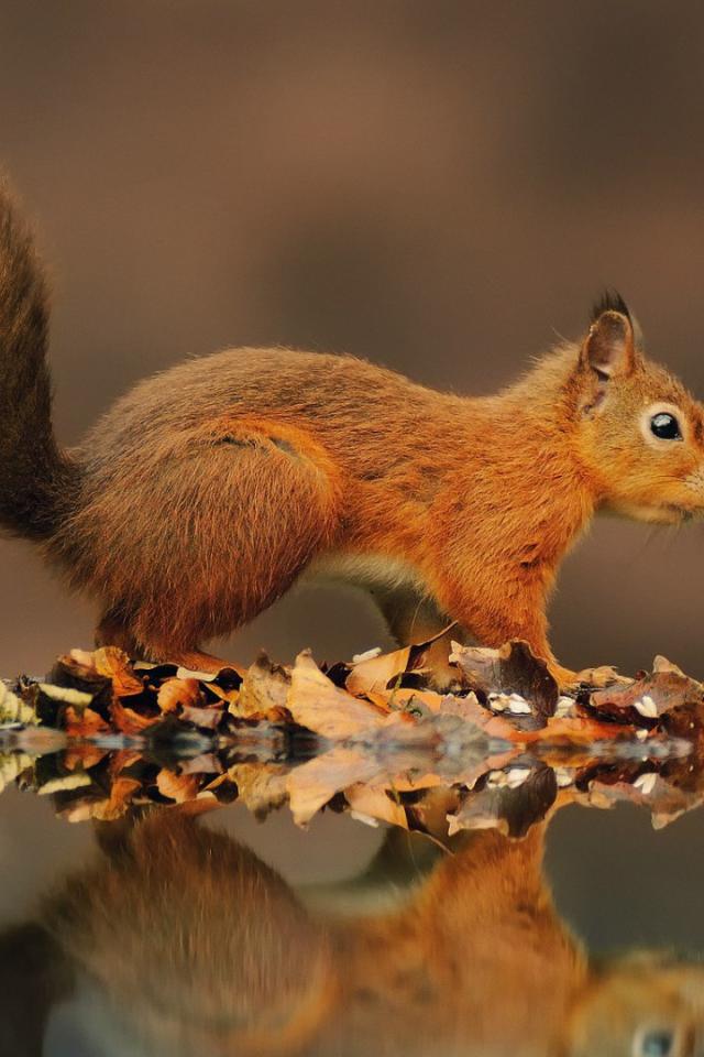Wallpaper Red squirrel on a pond