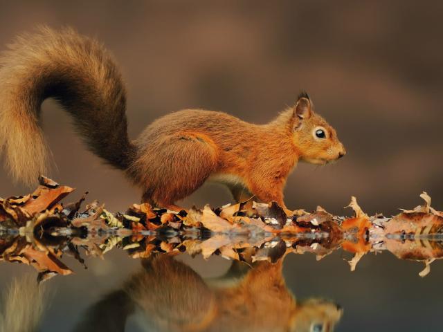 Wallpaper Red squirrel on a pond