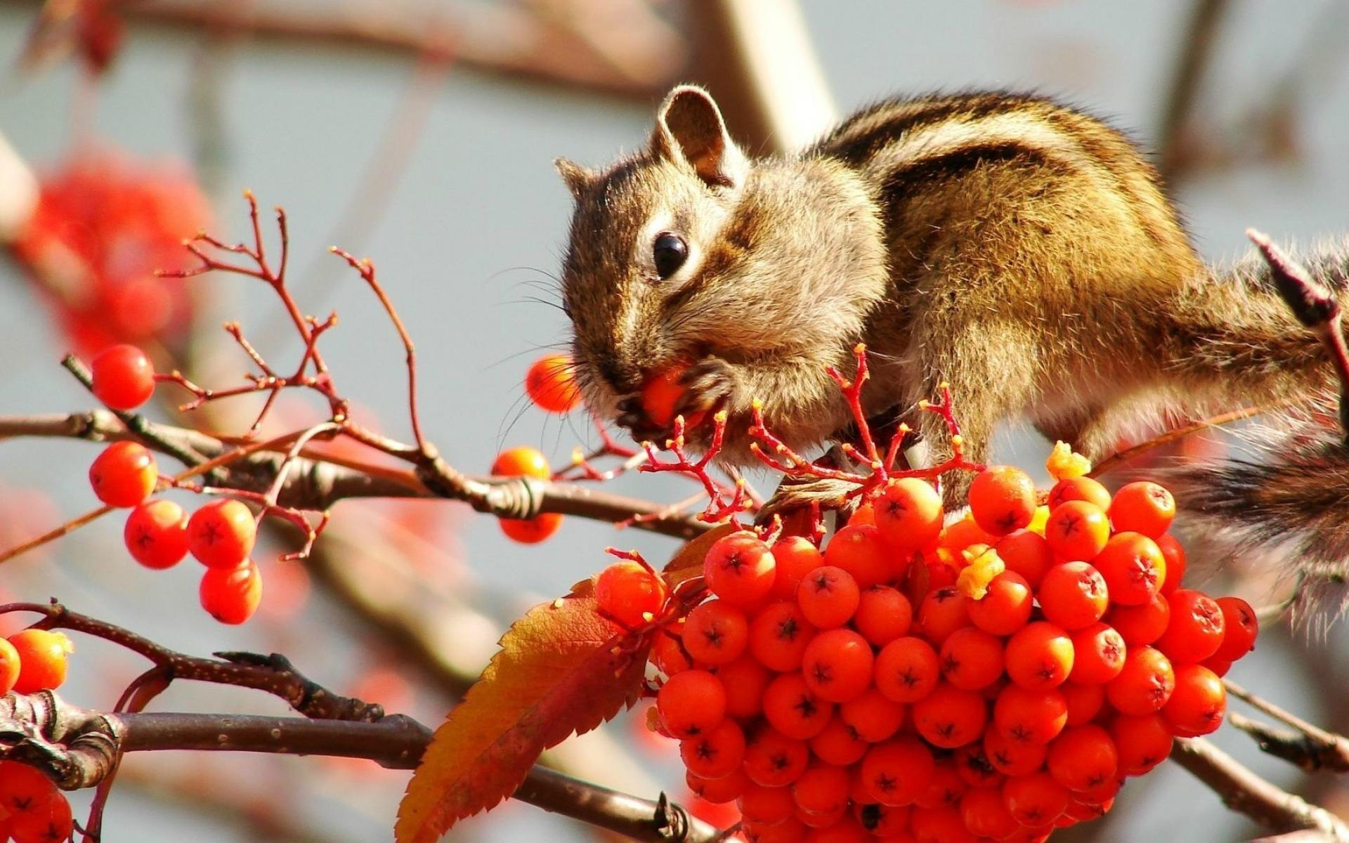 Wallpaper Chipmunk eating rowan