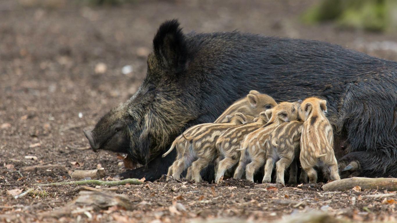 Wallpaper Wild pigs with mom