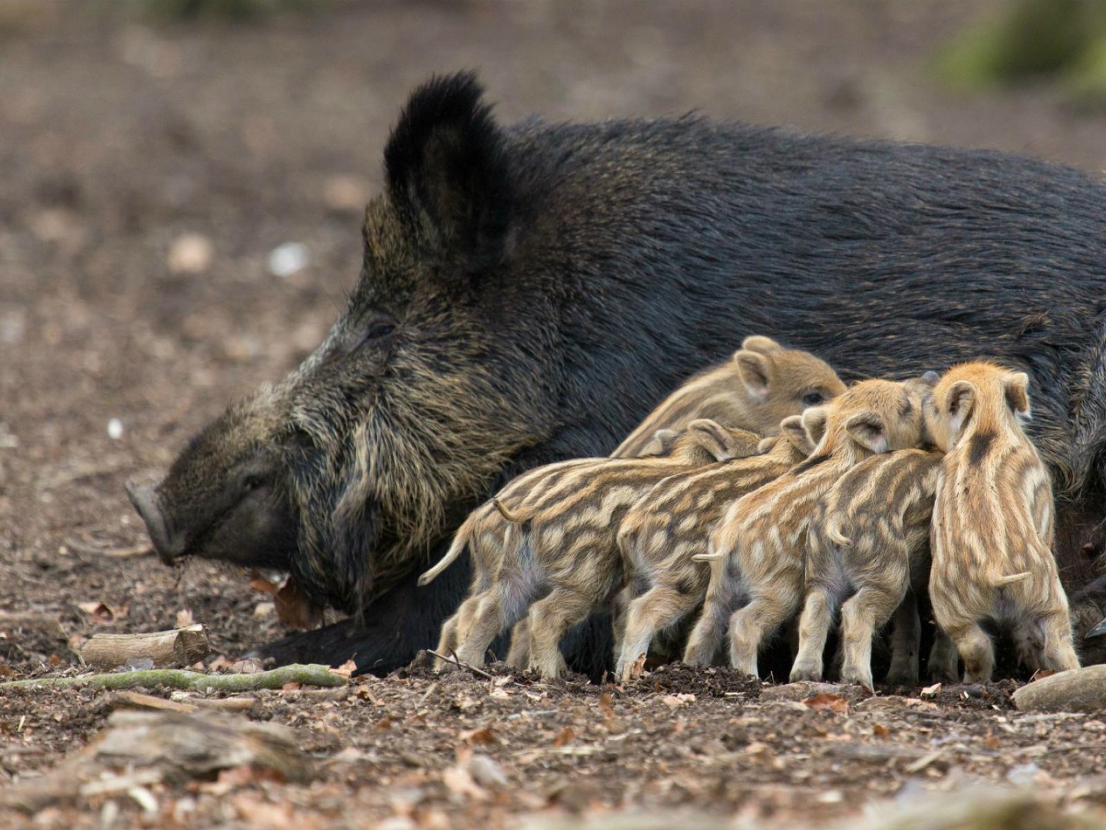 Wallpaper Wild pigs with mom