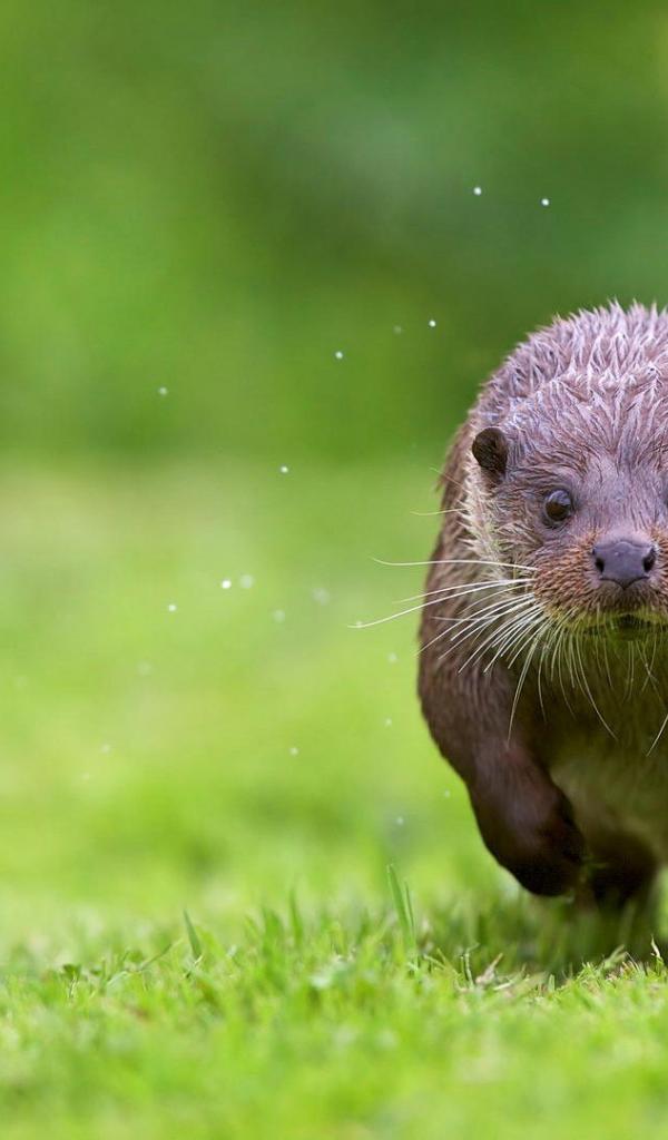 Wallpaper Otter running through the grass
