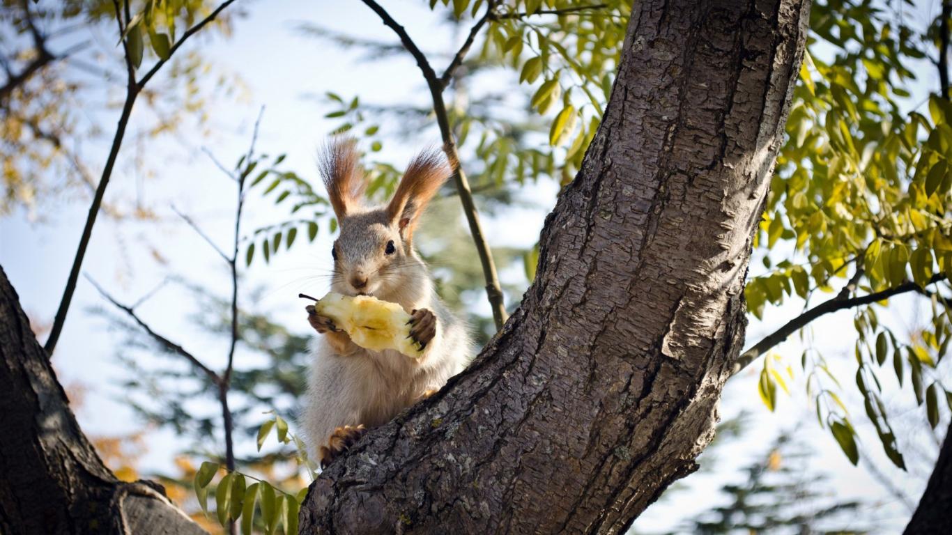 Wallpaper Squirrel eats a pear