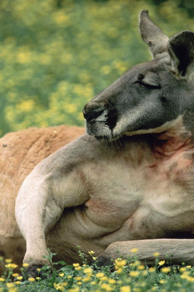 Wallpaper Kangaroo resting on the grass