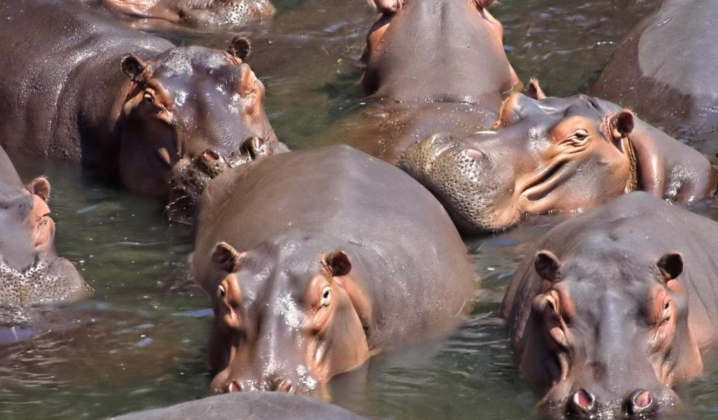 » Wallpaper A herd of hippos