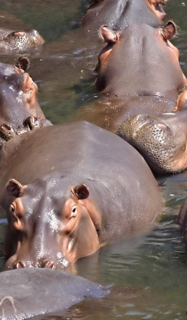 » Wallpaper A herd of hippos