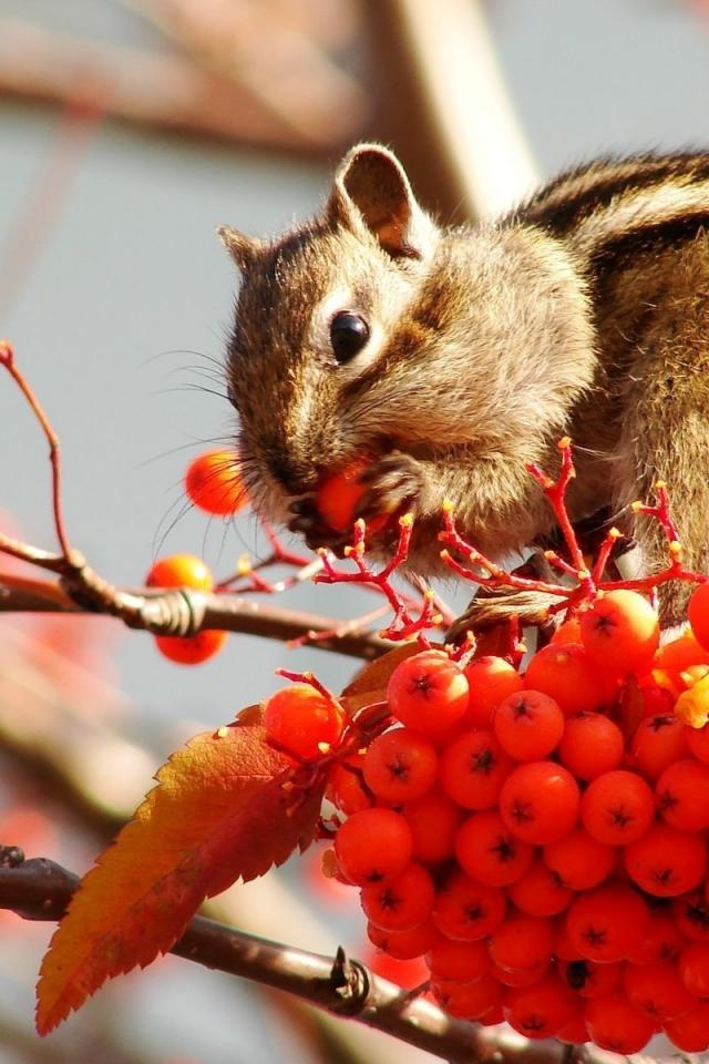 Wallpaper Chipmunk on a mountain ash